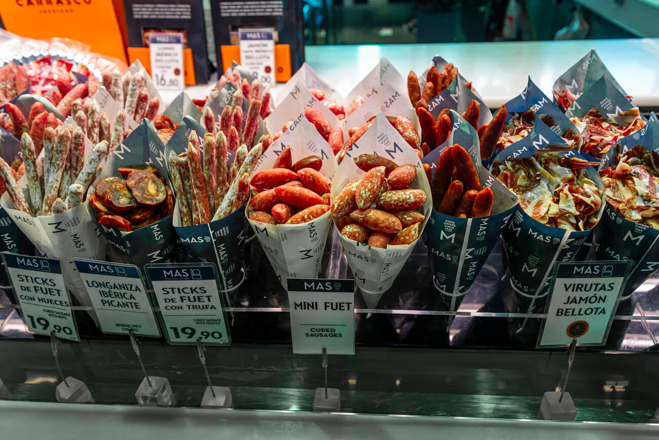 Hungry from my travels and having skipped breakfast, I hit the famous Mercado de San Miguel around 1 PM. It’s just a stone’s throw from Plaza Mayor and filled with mouthwatering options.
